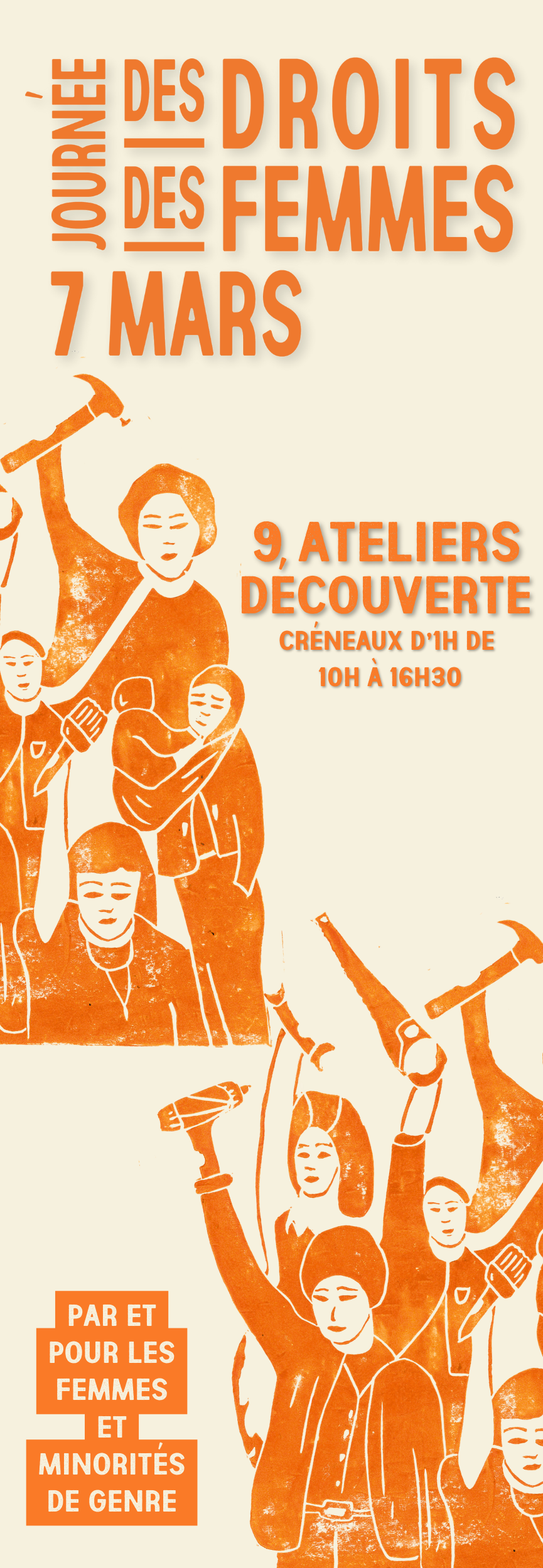 Dans le cadre des programmations pour la Journée Internationale des Droits des Femmes, Comme Un Établi propose pour le samedi 7 mars des ateliers GRATUITS de découverte de métiers artisanaux par et pour les femmes et minorités de genre. Ces ateliers seront animés par des artisanes autour du travail du bois, du métal, et autre matériaux ! 🔥