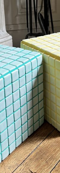 Je conçois des pièces de mobilier et objets à partir de carrelage upcyclé. Pièces uniques, conceptions sur mesure ou encore habillage d’espaces commerciaux.